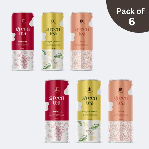 - Variety Pack: Includes 6 cans of iced green tea in 3 delightful flavours - 2 Ginger & Lemon, 2 Cranberry, and 2 Peach.