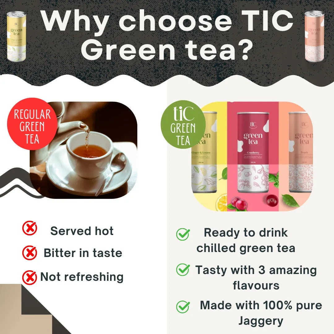 TIC Cranberry, Peach & Ginger Lemon Iced Green Tea 2 piece each | 250ml Pack of 6